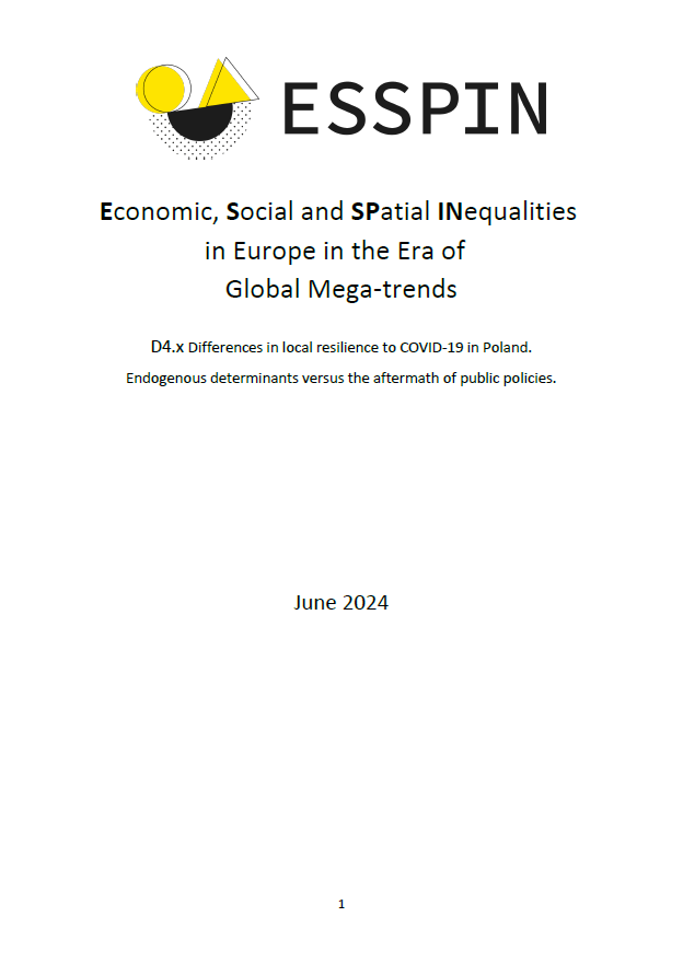 Opis bibliograficzny: Herbst Mikołaj (2024) Differences in local resilience to COVID-19 in Poland. Endogenous determinants versus the aftermath of public policies. Working paper, pp. 19.
